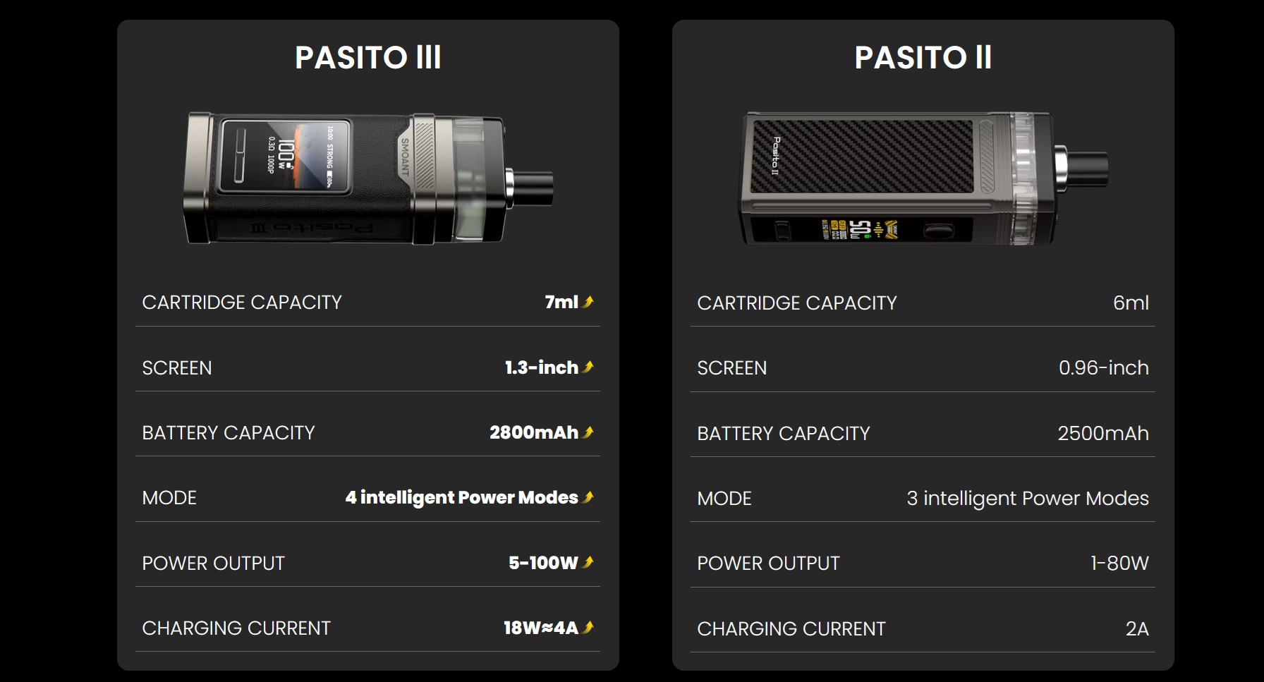 Компания Smoant представила свой новый продукт. Долгожданный Pasito 3 предложил пользователям знакомый, но в то же время переработанный дизайн, увеличенный запас автономности и новый картридж на 7мл емкости. Батарейный блок под-системы оснащен встроенным источником питания, емкость которого составляет 2800 мАч. Зарядка осуществляется током до 4А по Type-C. Гаджет имеет умную плату, который выдает мощность в диапазоне 0т 5 до 100 Ватт, а также обладает четырьмя предустановленными режимами парения: Strong, Norm, Soft и DVW. Устройство оснащено Bluetooth, который используется для передачи настроек с другого устройства.